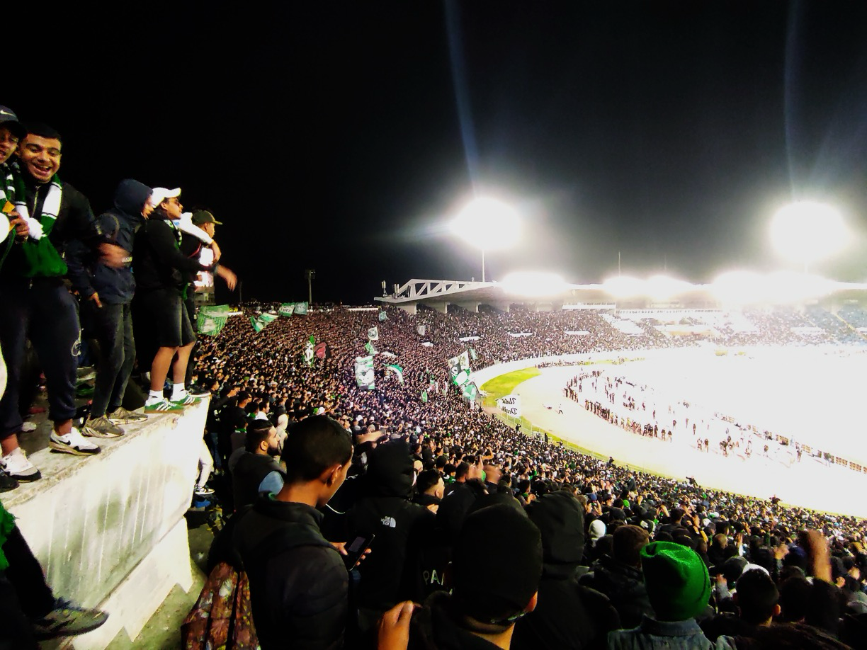 In addition to the street protests that periodically erupt in the Maghreb, another significant political arena for young Maghrebi men since the 2000s has been football stadiums, modeled on Italian and European ultras (Bourkia, 2018). The ultras groups of the Maghreb – composed of young men from different social classes – have progressively become well-known on the international scene with the advent of social media, thanks to their impressive production of choreographies (tifo), the simultaneous lighting of flares (krakāǧ), and coordinated body movements during chants launched by the leader (capo) of the curva. |