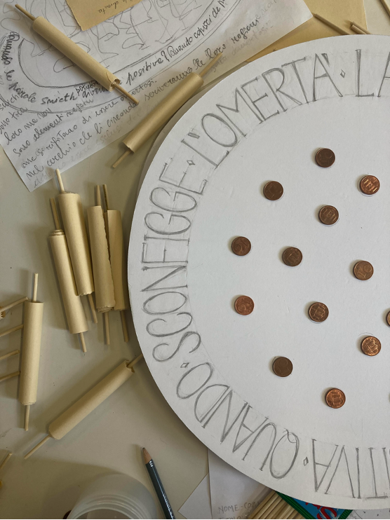 The project made it possible to conceive an elaboration from a concept. Besides being an opportunity for us for a reflection-through-action, it will incite new considerations to all those who, by approaching the work, will pick up a scroll, read it and ask themselves new questions about the judgmental term 'snitch' and, conversely, the value of counteracting omerta.